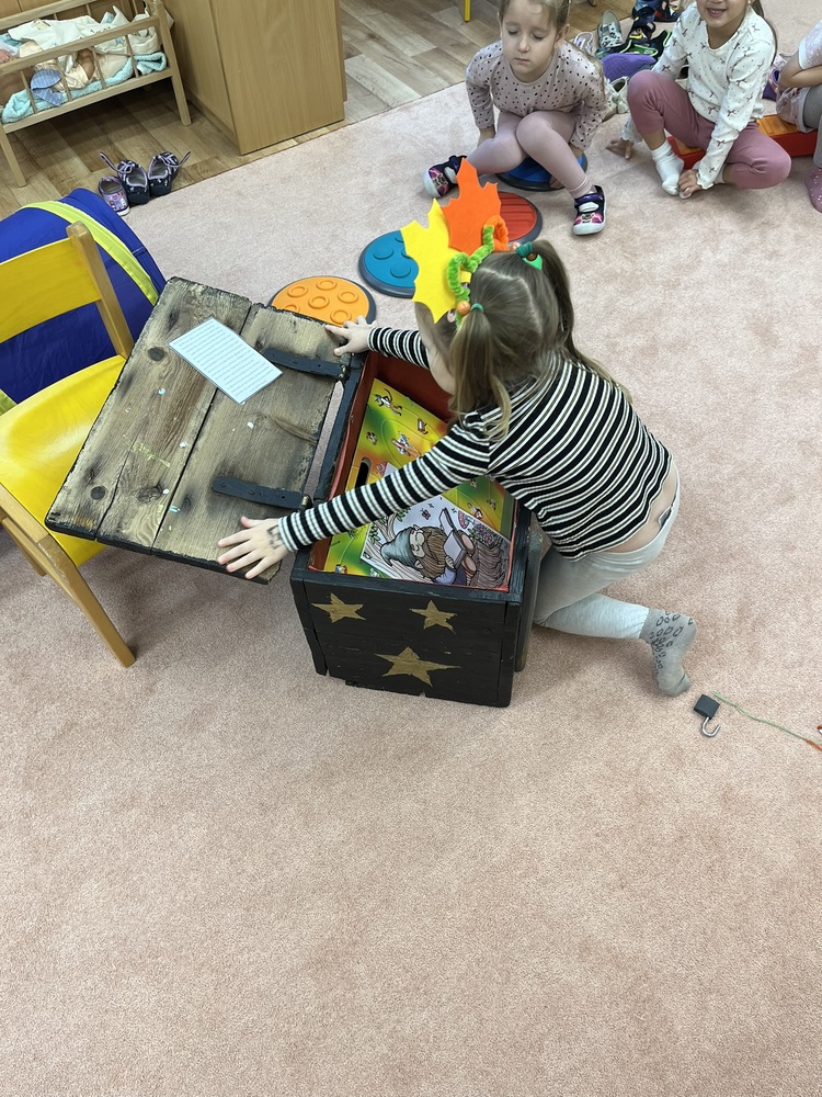 V rámci uzavření části dlouhodobého projektu dětí ze 3.třídy, jsme se s dětmi vydaly na cetsu za pokladem. Nejprve složily a slepily mapu ze čtyř částí, které získaly od skřítků za splněné aktivity a v parku pak podle ní našly poklad ve formě diplomů za péči o přírodu a zvířátka a dalších maličkostí.
