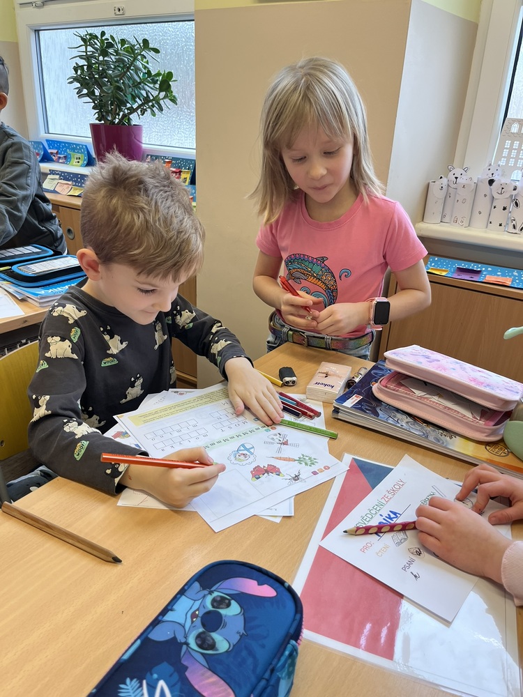 Budoucí prvňáčkové naší MŠ, měly možnost navštívit první třídy ZŠ ve Fr.L. Seznámili se tak s prostředím školy, a vyzkoušeli si spoustu aktivit, se kterými jim kamarádi z prvních tříd pomáhali. Atmosféra byla příjemná a děti byly nadšené.